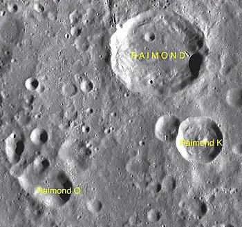 Por convención estos elementos son identificados en los mapas lunares poniendo la letra en el lado del punto medio del cráter que está más cercano a Raimond.