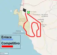 Desde allí los corredores siguieron en enlace por la Carretera Panamericana hacia el sur, pasando por Pueblo Nuevo, Pachacutec, Santiago, Palpa, Nazca (donde se encuentran las milenarias Líneas de Nazca), hasta San Juan de Marcona, a orillas del mar, donde se establecerá el campamento.[16]