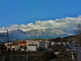 ![]() Vista de la localidad con la sierra de Gredos al fondo. | ||