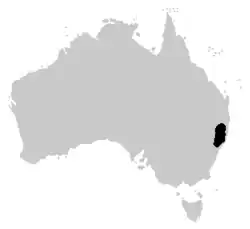 Originaria de Australia en Myall Lakes cerca de Parque nacional de Dorrigo y Parque nacional Cumbres Barrington.[1][2]