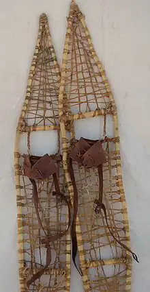 Las raquetas de nieve tradicionales tienen un marco de madera dura con cordones de piel. Las modernas, mayoritariamente, están hechas de metal ligero o son de una única pieza de plástico acoplada al pie para distribuir el peso. Además, suelen disponer de algunos elementos que mejoran el diseño original, como son: