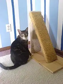 Un rascador es un poste de madera cubierto con un material áspero que los dueños de gatos disponen para que se rasquen sus mascotas. Los gatos tienen un impulso natural de rascarse: la acción les ayuda a eliminar material viejo de sus garras y marcar el territorio con las glándulas olorosas de sus patas. Se puede evitar que los gatos de interior ejerzan este impulso en los muebles y tapicerías de la vivienda si cuentan con un rascador aceptable.