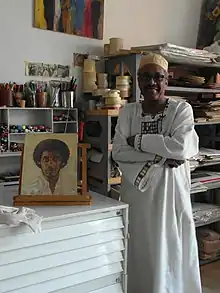 Diab en su estudio en Jartum, junto a un autorretrato temprano