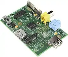 La Raspberry Pi es una serie de ordenadores monoplaca u ordenadores de placa simple (SBC por las siglas del anglicismo Single Board Computer) de bajo costo desarrollado en el Reino Unido por la Raspberry Pi Foundation, con el objetivo de poner en manos de las personas de todo el mundo el poder de la informática y la creación digital.[3] Si bien el modelo original buscaba la promoción de la enseñanza de informática en las escuelas,[4][5][6] este acabó siendo más popular de lo que se esperaba,[7] hasta incluso vendiéndose fuera del mercado objetivo para usos como robótica. No incluye periféricos (como teclado y ratón) o carcasa.