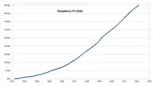 De acuerdo a la Raspberry Pi Foundation, más de cinco millones de Raspberry Pi fueron vendidas en febrero de 2015, haciéndola la computadora británica mejor vendida. En noviembre de 2016 vendieron once millones de unidades,[10][11] y 12.5 millones en marzo de 2017, haciéndolo el tercer mejor vendido "computador de propósito general".[12] En julio de 2017, las ventas alcanzaron cerca de 15 millones.[13] En marzo de 2018, las ventas alcanzaron 19 millones.[14]