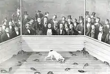 El origen de la rata doméstica moderna empieza con los cazadores de ratas de los siglos XVIII y XIX que atrapaban ratas por toda Europa.[1] Estos cazadores podían matar a las ratas o, más probablemente, venderlas para ser utilizadas en el deporte de sangre.[5] El rat-baiting era un deporte popular hasta principios del siglo XX. Consistía en llenar una fosa con varias ratas y luego colocar apuestas sobre cuánto tiempo le tomaría a un terrier matar a todas. Se cree que mientras el deporte estaba en su cima, tanto cazadores como deportistas empezaron a quedarse con ratas de colores extraños, que luego pasaron a criar y a vender como mascotas.[1][6] Los dos hombres que se cree formaron la base del gusto por las ratas domésticas fueron Jack Black, cazador de ratas de la Reina Victoria, y Jimmy Shaw, director de una de las casas de deportes públicas más grandes de Londres. Ellos fueron los responsables de comenzar muchas de las variedades de color existentes hoy en día.[1][7] Black era conocido por domar las ratas "más bonitas" de colores inusuales, decorándolas con moños y vendiéndolas como mascotas.