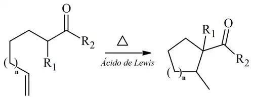 La reacción de Conia es una reacción intramolecular, térmica o catalizada por un ácido de Lewis de compuestos carbonílicos insaturados para producir productos cíclicos.[1]