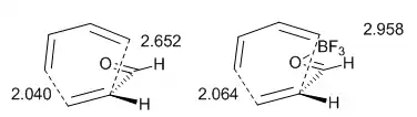 Se cree que la reacción catalizada de Diels-Alder es concertada. Sin embargo, un estudio computacional a nivel B3LYP / 6-31G (d) ha demostrado que el estado de transición de la reacción de Diels-Alder catalizada por BF 3 entre propenal y 1,3-butadieno es más asíncrona que la de la reacción térmica - enlace más alejado del grupo carbonilo se forma por delante del otro enlace.[64]