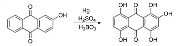 Una reacción conceptualmente relacionada es la reacción de Bohn-Schmidt (1889), la cual implica la hidroxilación de una hidroxiantraquinona con ácido sulfúrico en presencia de plomo, mercurio o selenio para dar así una antraquinona polihidroxilada.[6]
