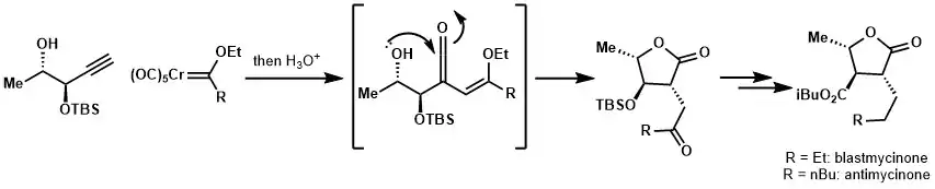 La reacción de Wuff-Dötz ha sido empleada en la síntesis de productos naturales:[15][16]