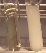 Cuando se usan yodo e hidróxido de sodio como reactivos, una reacción positiva produce yodoformo. El yodoformo (CHI3) es una sustancia de color amarillo pálido. Debido a su elevada polarizabilidad, por sus tres átomos de yodo, es un sólido a temperatura ambiente (confróntese con el cloroformo y el bromoformo). Es insoluble en agua, y tiene un olor a antiséptico. Se formará un precipitado visible de este compuesto a partir de una muestra, sólo cuando esté presente una metilcetona, etanal, alcohol secundario de metilo, o etanol