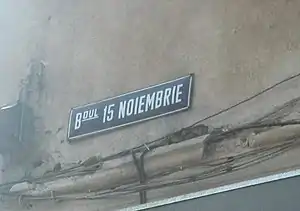![]() Cartel que dice 15 de noviembre en la calle Braşov en memoria de la rebelión. | ||||