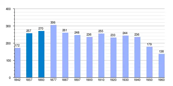 | Gráfica de evolución demográfica de Rebollosa de Hita[3] entre 1842 y 1960 |