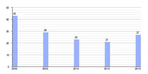 | Gráfica de evolución demográfica de Reboredo entre 2000 y 2019 |