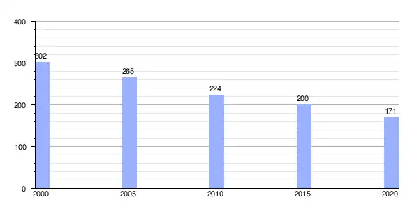 | Gráfica de evolución demográfica de Rececende (aldea) entre 2000 y 2020 |