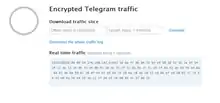 Captura del tráfico cifrado de Telegram para el concurso Criptoanálisis. Nótese el "sistema de cifrado en tiempo real" mostrado en el sitio web.