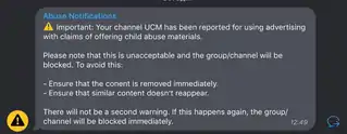 En 2019 ocurrió otro caso en Rusia con la difusión de maltrato a niños, para concienciar a la población se creó canal Bala Qorgay con ejemplos de los materiales compartidos.[221][222] Como respuesta en mayo de 2019, el equipo oficial envío mensajes de advertencia (ultimátum) a los canales para que ya no promocionen material de abuso infantil; de lo contrario, serían bloqueados.[221]