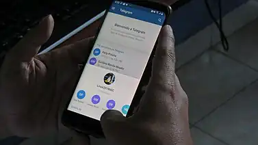 Telegram es una aplicación rusa de mensajería y llamadas VOIP desarrollado por Pável Dúrov y su hermano Nikolái. El servicio, desarrollado bajo el protocolo MTProto y administrado por una organización de responsabilidad limitada, fue objetivo de elogios y controversias del público, los especialistas, instituciones y gobiernos. El servicio tiene 400 millones de usuarios activos mensuales en 2020.[1] Comparado a los 300 millones en 2019 y 200 millones en marzo de 2018.[2]