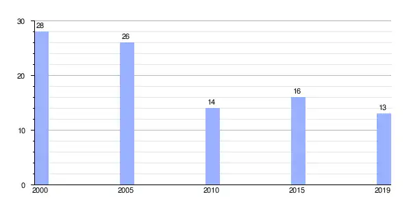 | Gráfica de evolución demográfica de Recesende (aldea) entre 2000 y 2019 |