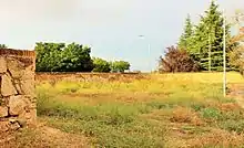 Lienzo del baluarte, murallas viejas y, en el medio, el foso.