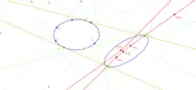 Recíprocamente, el problema de hallar la homología que transforma una cónica en otra dada, es equivalente a saber hallar las tangentes comunes a ambas cónicas.