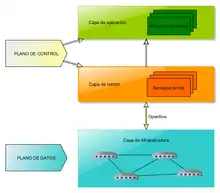 Las redes definidas por software (en inglés software defined networking, SDN) son un conjunto de técnicas relacionadas con el área de redes computacionales, cuyo objetivo es facilitar la implementación e implantación de servicios de red de una manera determinista, dinámica y escalable, evitando al administrador de red gestionar dichos servicios a bajo nivel. Todo esto se consigue mediante la separación del plano de control del plano de datos.[1]