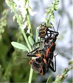 Los redúvidos (Reduviidae) son una familia grande y cosmopolita de hemípteros predadores del suborden Heteroptera.[1] Incluye a las chinches asesinas (géneros Melanolestes, Psellipus, Rasahus, Reduvius, Rhiginia, Sinea, Zelus), las vinchucas (Triatominae) y los boticarios (géneros Apiomerus, Phymata), entre otros.