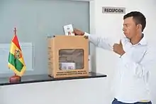 El referéndum constitucional de Bolivia de 2016 se realizó el domingo 21 de febrero de ese año.[3] El objetivo de este referéndum fue la aprobación o rechazo del proyecto de modificación constitucional para permitir al presidente o vicepresidente del Estado Boliviano (que en ese entonces eran Evo Morales y Álvaro García) el postularse a ser reelectos a una elección.[4] El "No" ganó con un total de 51,30% de los votos, mientras el "Sí" obtuvo el 48,70% de votos restantes.[5][6]