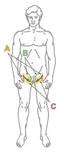 Más específicamente, el reflejo usa las fibras sensitivas y motoras del nervio genitofemoral, formada por fibra tanto de los nervios espinales de L1 y L2. Cuando se golpea la zona interna del muslo, se estimulan las fibras de la rama femoral del nervio genitofemoral y el nervio ilioinguinal. Esa sinapsis en la médula espinal y la activación de las fibras motoras de la rama genital del nervio genitofemoral son las que causan que el músculo cremaster se contraiga para elevar el testículo (ver diagrama para la localización de esas regiones nerviosas y la localización del toque estimulador).