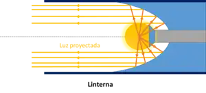 - La capa actúa como una pantalla de cine, reflejando la luz directamente de vuelta a la fuente, es decir, hacia la pantalla semirreflectora donde, por detrás, se encuentra situado el espectador.