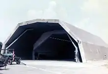 - Esta obra contiene una traducción derivada de «Hardened Aircraft Shelter» de Wikipedia en inglés, concretamente de esta versión, publicada por sus editores bajo la Licencia de documentación libre de GNU y la Licencia Creative Commons Atribución-CompartirIgual 4.0 Internacional.