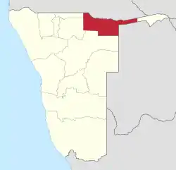 Tiene una superficie de 43.418 km², que en términos de extensión es similar a la de Dinamarca. Al norte limita con Cuando Cubango (Angola) y al sureste con el distrito noroeste de Botsuana. Internamente limita con Zambezi al este, Otjozondjupa al sur, Oshikoto al oeste y Ohangwena al noroeste.