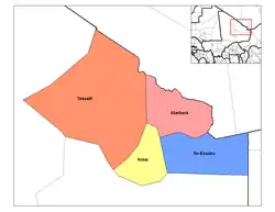 La región de Kidal está dividida en 4 cercelas o círculos:[4][5]