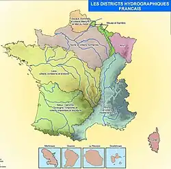 En la costa este, donde mueren los Pirineos Orientales, posee la reserva marina de Cerbère-Banyuls desde 1974, abarcando un área de 650 hectáreas.[21] Muchos grandes ríos de Francia tienen su origen o discurren en parte por la nueva región: el Garona es el principal río que la cruza y el Ródano, en su curso bajo, es su límite oriental. El Macizo Central —afluentes derechos del Garona y derechos del bajo Ródano— y los Pirineos —afluentes por la izquierda del Garona— son las grandes fuentes de agua. Hidrográficamente, la región pertenece a varias cuencas y vertientes, ordenadas por la costa donde desembocan, la atlántica (oeste) o la mediterránea (este):