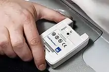 El conocido registrador de datos de accidentes fue inventado por la empresa Mannesmann Kienzle GmbH. y, en 1992, estaba pendiente de Patente.[14][15] El desarrollo comenzó en Alemania a principios de la década de 1980 por las dos compañías MBB y Kienzle, que perseguían diferentes conceptos. En general, se tomó como modelo la caja negra, que había sido desarrollada a principios de los años cincuenta en Australia por David Warren. Ya en 1973, General Motors presentó una patente para un "probador de impactos de vehículos".[16] Mannesmann Kienzle entregó los primeros registradores de datos de accidentes a principios de 1993.[17]