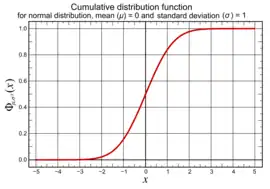 Por ejemplo, Φ(2) ≈ 0.9772, o Pr(X ≤ μ + 2σ) ≈ 0.9772, correspondiente a un intervalo de predicción de (1 - (1 - 0.97725) · 2) = 0.9545 = 95.45%.