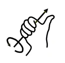 Así, cuando se hace girar un sacacorchos o un tornillo «hacia la derecha» (en el sentido de las agujas de un reloj) el sacacorchos o el tornillo «avanza», y viceversa, cuando se hace girar un sacacorchos o un tornillo «hacia la izquierda» (contrario a las agujas del reloj), el sacacorchos o el tornillo «retroceden».
