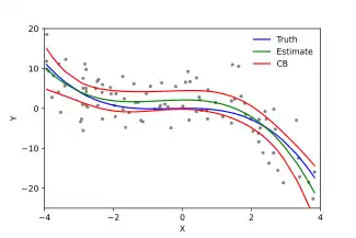 La regresión polinomial es un ejemplo de análisis de regresión que utiliza funciones de base para modelar una relación funcional entre dos cantidades. Más específicamente, reemplaza en regresión lineal con base polinomial , por ejemplo . Un inconveniente de las bases polinomiales es que las funciones base son "no locales", lo que significa que el valor ajustado de y a un valor dado depende en gran medida de los valores de los datos con lejos de .[5] En la estadística moderna, las funciones de base polinomiales se utilizan junto con nuevas funciones de base, como splines, funciones de base radial y ondículas. Estas familias de funciones básicas ofrecen un ajuste más parsimonioso para muchos tipos de datos.