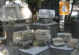 Dinamia: hija del Gran Farnaces, nieta del Rey de Reyes Mitridates VI Eupator, Salvadora y Benefactora de los griegos pónticos, amiga de los romanos.Inscripción hallada en dichas estatuas
