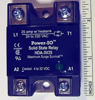 Un relé de estado sólido (SSR en inglés) es un dispositivo interruptor electrónico que conmuta el paso de la electricidad cuando una pequeña corriente es aplicada en sus terminales de control. Los SSR consisten en un sensor que responde a una entrada apropiada (señal de control), un interruptor electrónico de estado sólido que conmuta el circuito de carga, y un mecanismo de acoplamiento a partir de la señal de control que activa este interruptor sin partes mecánicas. El relé puede estar diseñado para conmutar corriente alterna o continua. Hace la misma función que el relé electromecánico, pero sin partes móviles.