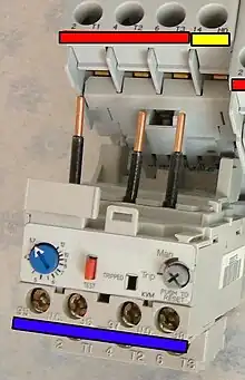 Los relés térmicos o relevotermico de sobrecarga son los aparatos más utilizados para proteger los motores contra las sobrecargas débiles y prolongadas. Se pueden utilizar en corriente alterna o continua.[1] Este dispositivo de protección garantiza: