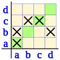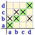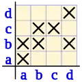 | d | (a, d) | (b, d) | (c, d) | (d, d) |