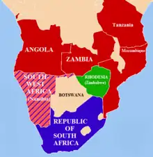 A pesar de las preocupaciones por los derechos humanos, Carter continuó el apoyo de los Estados Unidos a Joseph Mobutu de Zaire, quien derrotó a Angola insurgentes respaldados por n en conflictos conocidos como Shaba I y Shaba II. Hasta 1975, Washington ignoró el sur de África porque la Guerra Fría estaba en juego allí. Las insurgencias débiles existían en Angola, Mozambique, Rhodesia y Namibia, pero no parecían amenazar el gobierno blanco después de que las potencias coloniales se fueran. El colapso de la última potencia colonial, el portugués, en abril de 1974 significó el fin del gobierno blanco en Angola y Mozambique. Cuba, con ayuda soviética, envió una gran fuerza militar. Tomó el control de Angola en 1976. La región ahora se convirtió en un campo de batalla de la Guerra Fría. El gobierno de Carter negoció sin cesar con Sudáfrica y la Organización Popular del Suroeste de África (SWAPO), que era el movimiento guerrillero que lucha por la independencia de Namibia de Sudáfrica. Vance y Brzezinski lucharon por la política, pero los EE. UU. Nunca enviaron tropas. En cambio, Cuba y la Unión Soviética apoyaron firmemente a los insurgentes de Namibia y 20.000 soldados cubanos se encontraban en la vecina Angola. El equipo de Thy Carter no pudo encontrar una solución,[9][10]