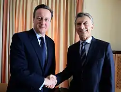 En 2016, en el Foro Económico de Davos, Mauricio Macri (presidente argentino desde diciembre de 2015) se reunió con David Cameron, reafirmando y abriendo una nueva etapa de buenas relaciones bilaterales.[25]