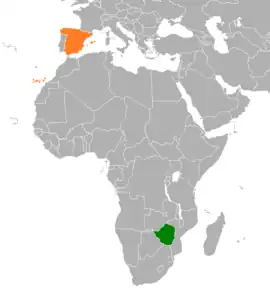 España estableció relaciones diplomáticas con Zimbabue a raíz de su independencia, y abrió su Embajada en Harare en 1981.[3]