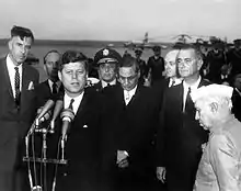 El gobierno de Kennedy apoyó abiertamente a India durante la Guerra Sino-India de 1962 y consideró la acción china como "una flagrante agresión comunista china contra India" .[32][33] El Fuerza Aérea de los Estados Unidos voló en armas, municiones y suministros de ropa a las tropas indias y la Marina de los Estados Unidos incluso envió al USS Kitty Hawk (CV-63) portaaviones del Océano Pacífico para proteger a la India, solo para recuperarla antes de que llegue a ka Bahía de Bengala.[34][35] En una reunión de mayo de 1963 Consejo de Seguridad Nacional de los Estados Unidos, los Estados Unidos discutieron la planificación de contingencia que podría implementarse en el caso de otro ataque chino a la India. Secretario de Defensa Robert McNamara y el General Maxwell Taylor aconsejaron al presidente que usara armas nucleares en caso de que los estadounidenses intervengan en tal situación. Kennedy insistió en que Washington defienda a la India como lo haría con cualquier aliado, y dijo: "Nosotros deberíamos defender la India, y por lo tanto' 'defenderemos la India".[36][37] El embajador de Kennedy en India fue el destacado economista liberal John Kenneth Galbraith, quien fue considerado cercano a la India.[38] Mientras estaba en la India, Galbraith ayudó a establecer uno de los primeros departamentos de informática de la India, en el Instituto Indio de Tecnología de la India en Kanpur, Uttar Pradesh. Como economista, también presidió (en ese momento) el mayor programa de ayuda exterior de Estados Unidos para cualquier país.