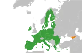 Georgia y la Unión Europea han mantenido relaciones desde hace varios años. Después de haber realizado reformas sustanciales en Georgia, el presidente Mikhail Saakashvili ha expresado su deseo de convertirse en miembro de la Unión Europea como prioridad a largo plazo. Sus vínculos con la UE, los Estados Unidos y la OTAN se han fortalecido después de intentar alejarse de la esfera de influencia rusa y de avanzar en la cooperación con Rusia.[1] Sin embargo, todavía persisten las disputas territoriales entre Osetia del Sur y Abjasia.