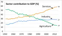 En 2015, la economía india creció a 7.5 %. El desempeño de la economía de la India hizo más rápido el crecimiento de la economía grande en el planeta, incluso China registró un crecimiento del 6,9 %.[18] FMI, hizo previsiones económicas para la India, y calcularon un crecimiento en el PIB de 7.3% para la India en 2015-2016; y un 7.5% en 2016-2017.[19]