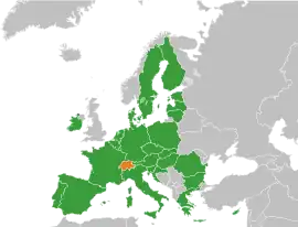 En un referéndum el 5 de junio de 2005, los votantes suizos acordaron, por una mayoría de 55 %, para unirse a la Tratado de Schengen, un resultado que fue considerado por los comentaristas de EU como un signo de apoyo por parte de Suiza, un país que tradicionalmente se percibe, para bien o para mal, como aislacionista. El acuerdo entró en vigor el 12 de diciembre de 2008.[3]
