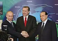 El primer ministro turco Erdogan viajó a Sochi, Rusia, el 16 de mayo de 2009 para una "visita de trabajo" con el primer ministro ruso Vladímir Putin en la que declaró: "Turquía y Rusia tienen responsabilidades en la región. Tenemos que dar pasos para la paz y el bienestar de la región. Esto incluye el problema de Nagorno-Karabaj, el conflicto de Oriente Medio, el problema de Chipre ". Putin respondió que," Rusia y Turquía, buscan resolver este tipo de problemas y facilitar esto en todos los sentidos, "pero," en cuanto a los problemas difíciles de el pasado —y el problema de Karabaj es uno de los temas— un compromiso debe ser encontrado por los participantes en el conflicto. Otros estados que ayudan a llegar a un compromiso en este aspecto pueden jugar un papel de mediadores y garantes para aplicar los acuerdos firmados. "Si bien en el tema de la seguridad energética Erdogan declaró que," El acuerdo sobre los suministros de gas a través de la llamada ruta occidental, firmado en 1986, se terminará en 2012. Hemos acordado hoy para comenzar a trabajar inmediatamente para prolongar este acuerdo. ”[6][7] Putin prepara una visita recíproca a Turquía en junio.[8]